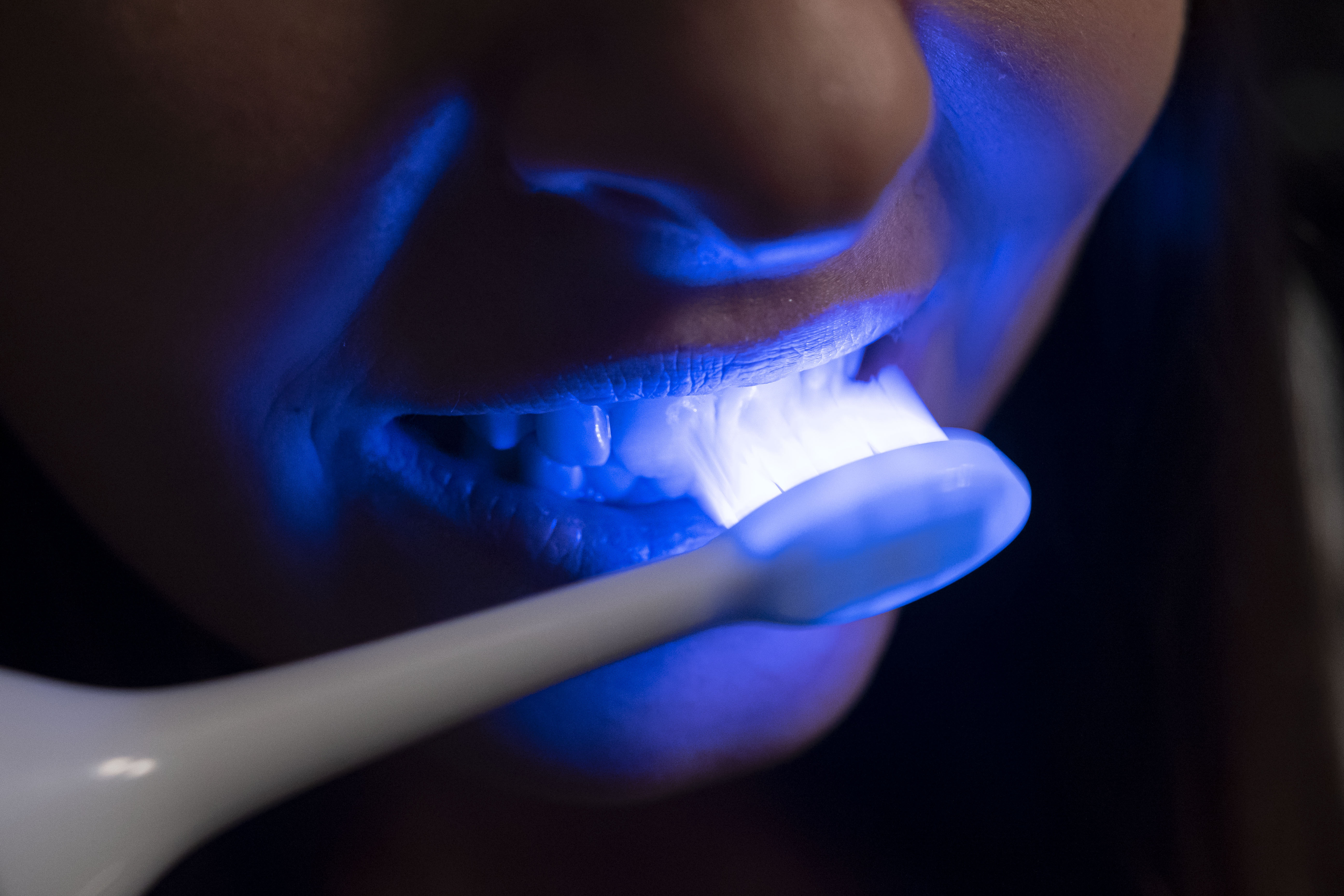 Modré světlo pomáhá odstraňovat bakterie díky svému dezinfekčnímu charakteru. Zároveň bezpečně a bez vzniku tepla proniká k povrchu skloviny, kde pomáhá odstraňovat žluté skvrny. Pro správný výsledek a maximální bělost doporučujeme vyhnout se po čištění čaji, kávě a pokrmům s výraznými barvivy, jako jsou například borůvky.