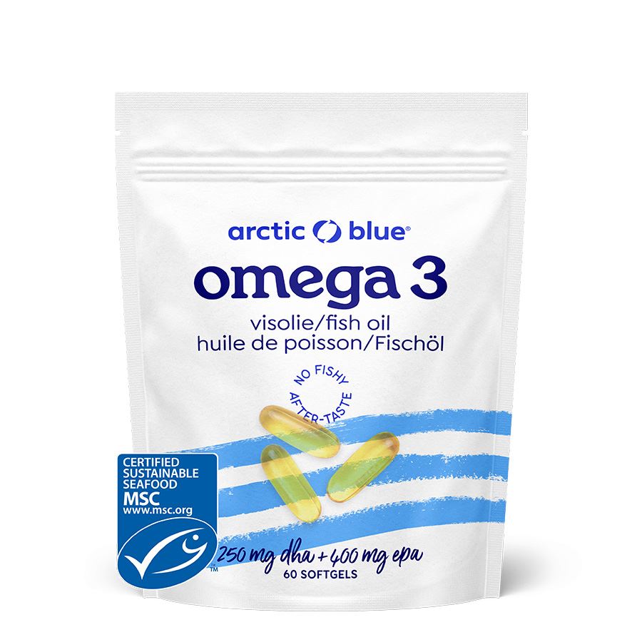 Doplněk stravy s obsahem omega-3 (EPA & DHA) z rybího oleje. Kapsle s čistým aljašským rybím olejem získaným z aljašské tresky žijící v Aljašském zálivu a Beringově moři. Jde o nejsevernější část Pacifického Oceánu hraničící se Severním pólem. V moderním zařízení v USA je olej očištěn a koncentrován, a je také ověřována jeho čerstvost (velmi nízká Totox hodnota). Díky zachování čerstvosti a velmi nízkého stupně oxidace nemá rybí olej Arctic Blue rybí zápach ani pachuť.