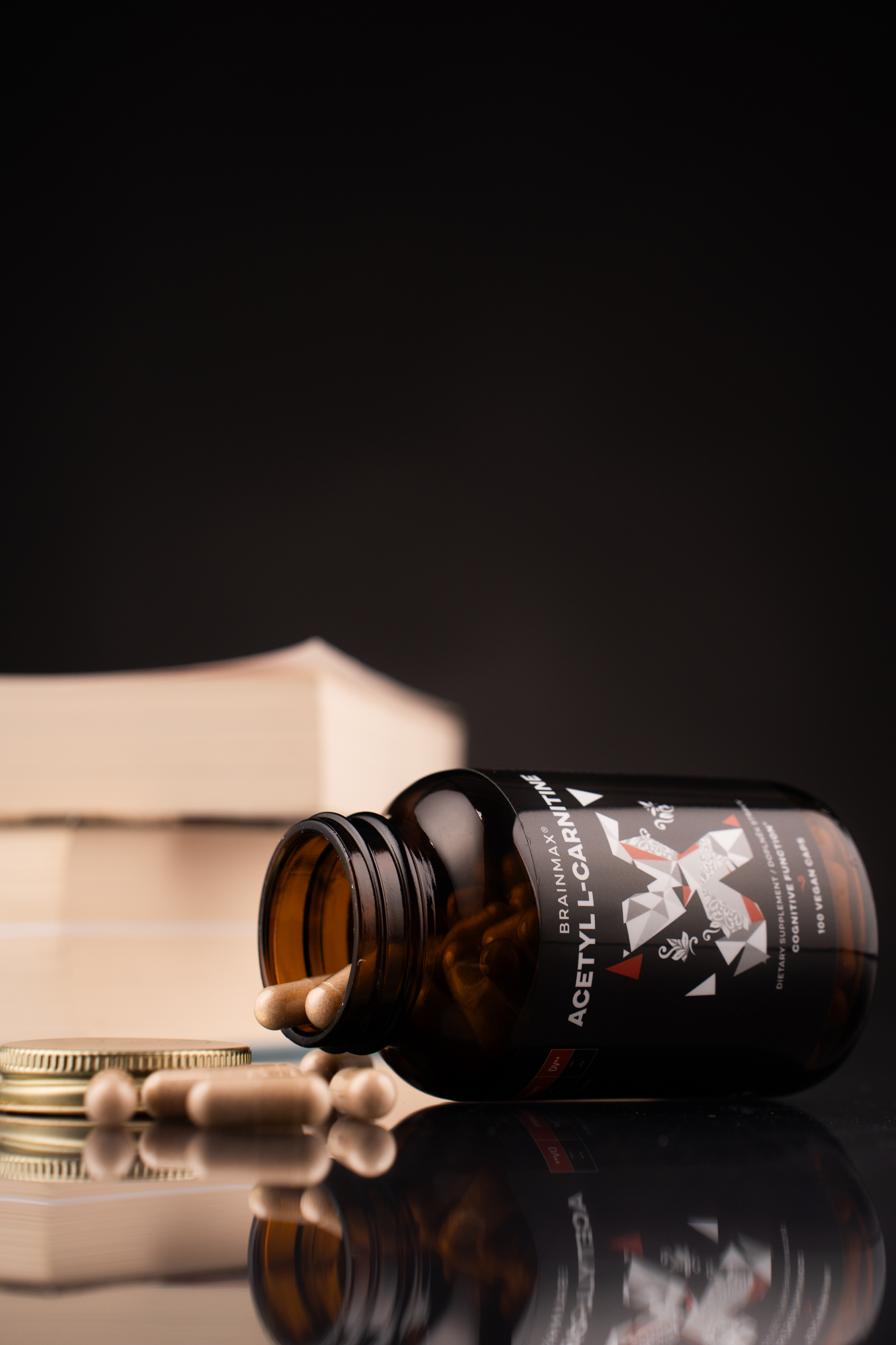 Většina běžně dostupných karnitinových doplňků obsahuje levnou formu L-Carnitinu, která neprochází do mozku a funguje hlavně jako podpora spalování tuků. My však používáme acetylovanou formu karnitinu, která je biologicky dostupnější a proniká až do centrálního nervového systému, kde ovlivňuje produkci neurotransmiterů, zejména acetylcholinu. Tato forma se často používá v klinických výzkumech s potenciálními vlivy na kognici, neuroprotekci a mentální energii.