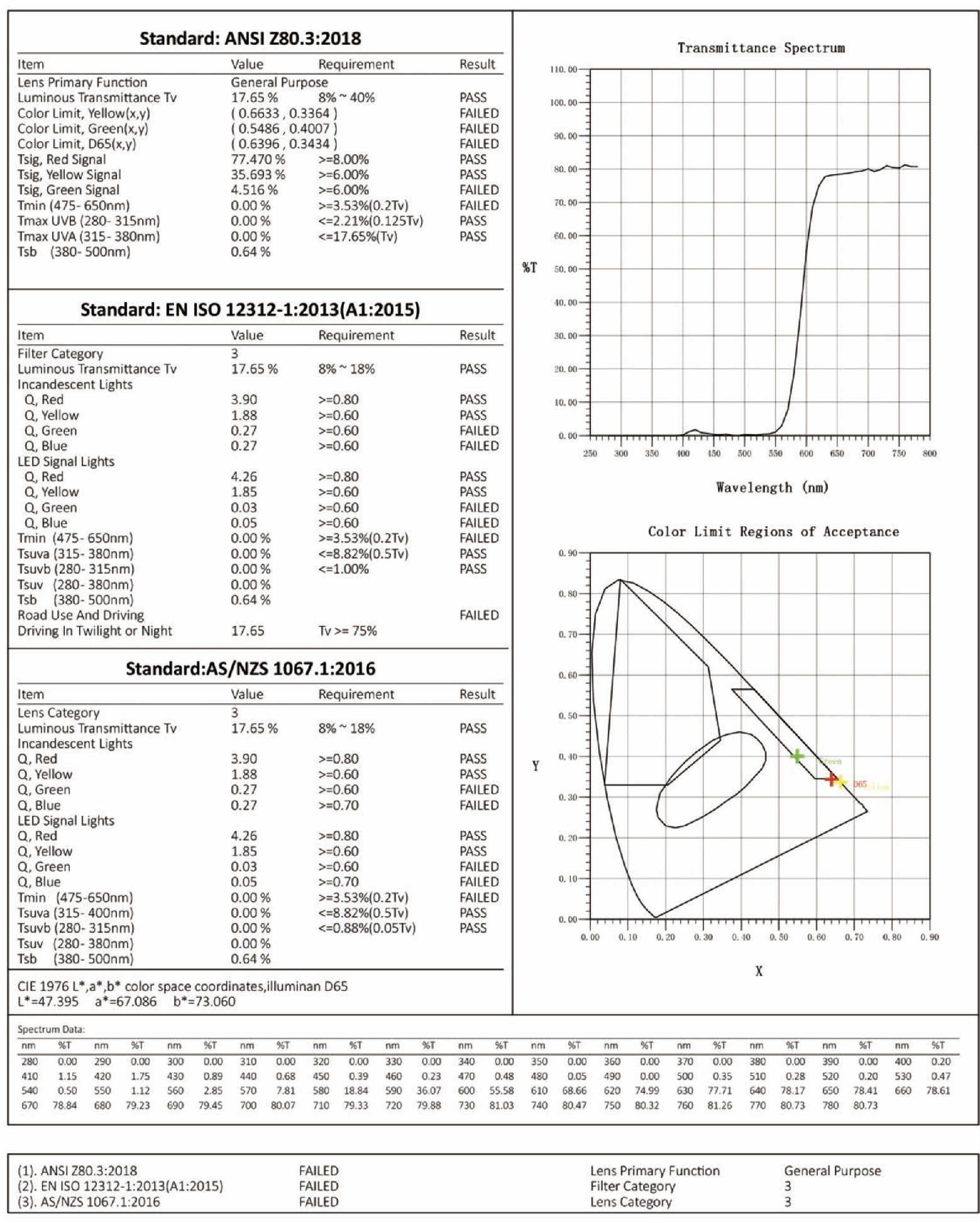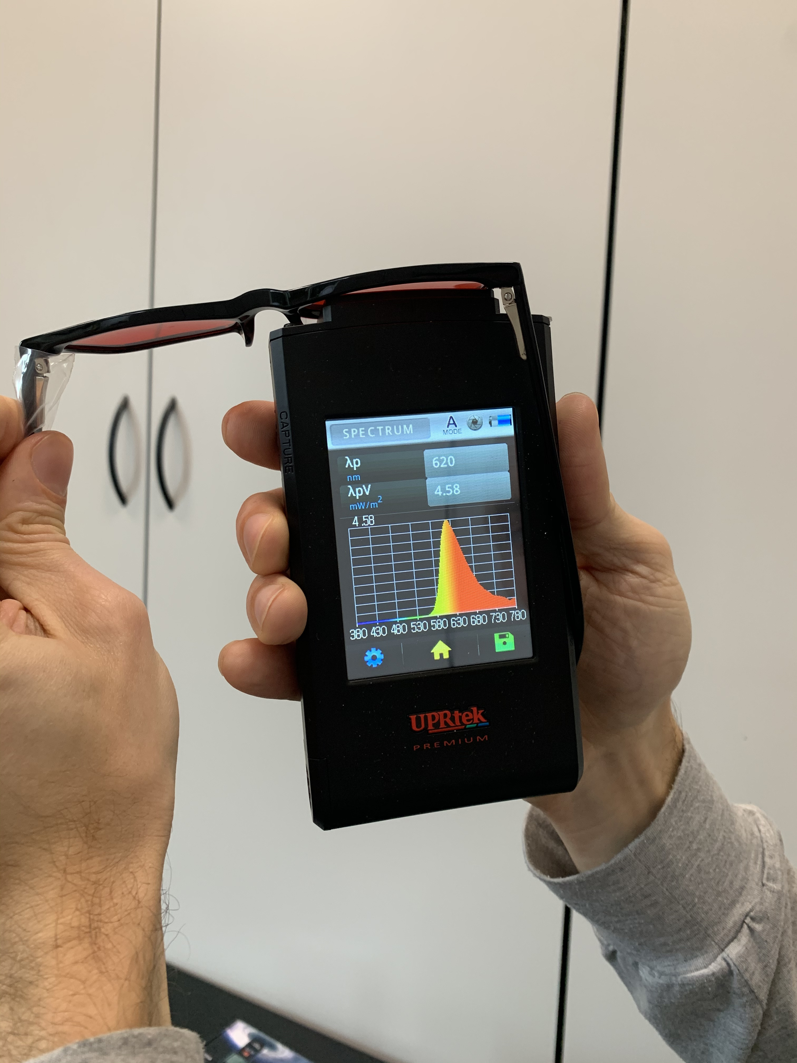 Brýle jsou určeny pro evropský trh a bylo na nich provedeno měření blokace modrého a zeleného spektra.