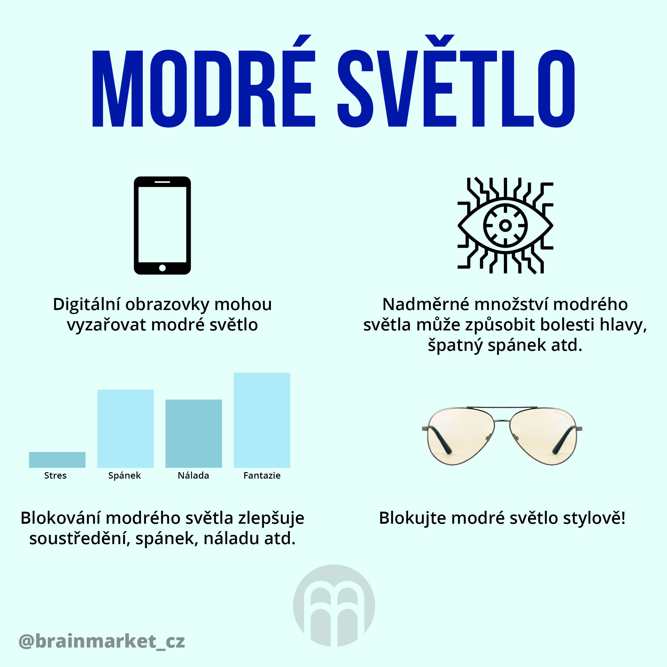 Zatím co přes den potřebujeme dostatek jasného světla, v noci je jeho přemíra škodlivá. Hlavně modrá složka světla signalizuje tělu, kdy má být aktivní a kdy je čas k odpočinku a regeneraci. Blokací modrého světla 2-3 hodiny před spánkem dáte tělu najevo, že se blíží čas spát. Odměnou bude zvýšená produkce meIatoninu (hormonu spánku a regenerace, silného antioxidantu), kvalitnější spánek a příjemná rána plná energie.