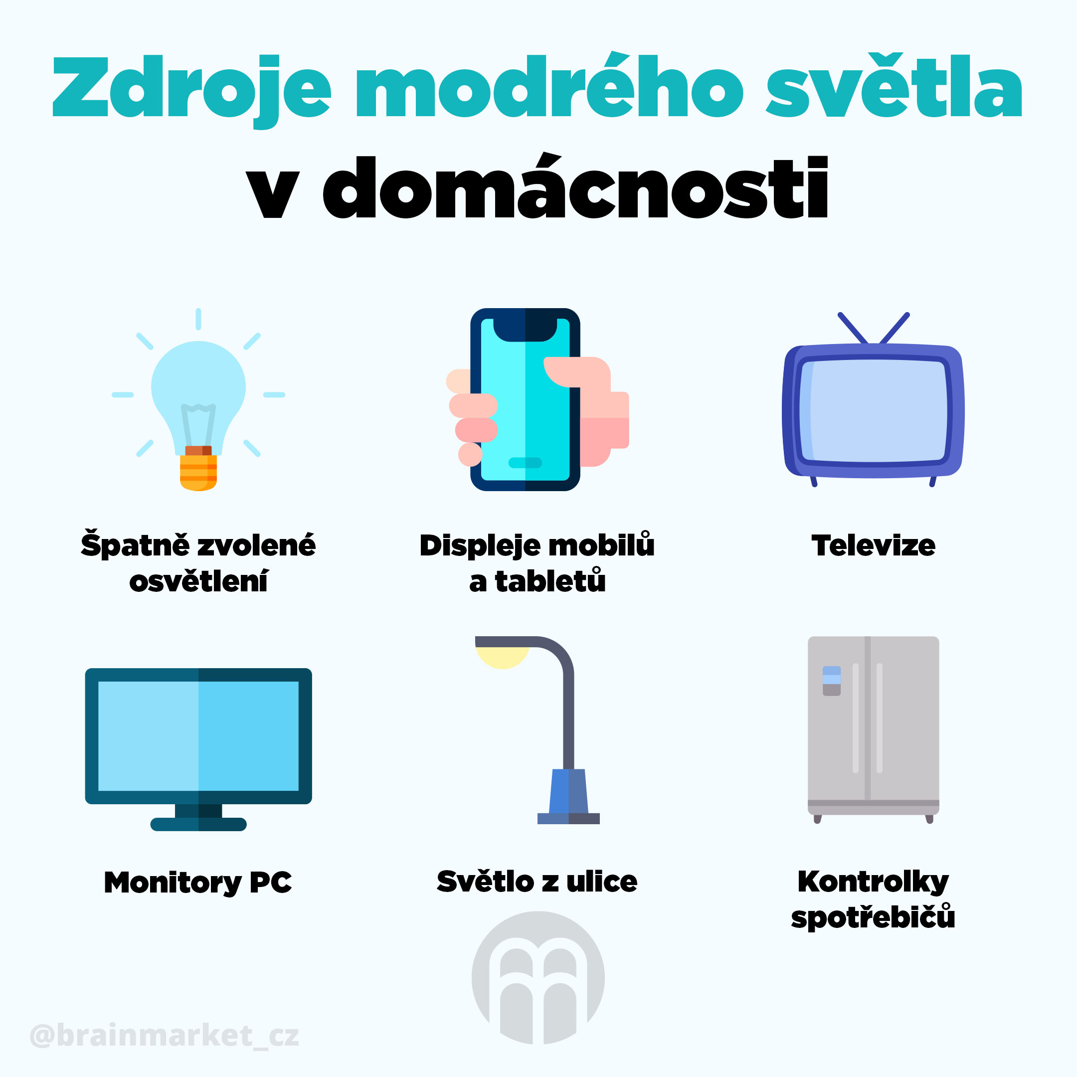 - Vystavení se modrému světlu z obrazovek narušuje produkci meIatoninu a spánkové vzory. Více se můžete dozvědět v našem článku.