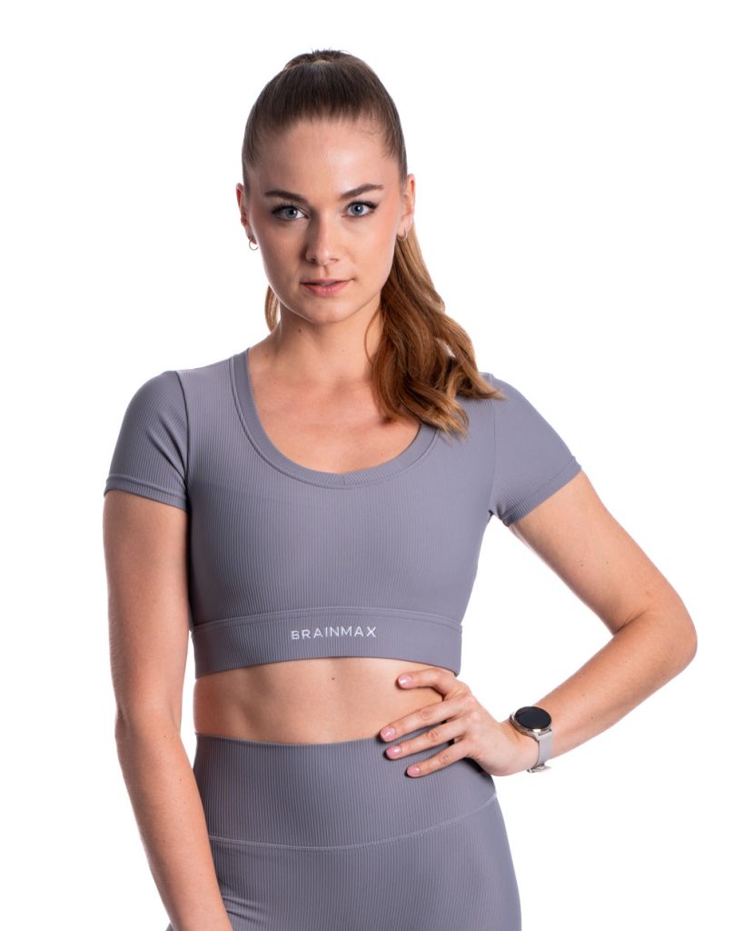 BrainMax dámský žebrovaný zkrácený top s krátkým rukávem, šedá Velikost: L