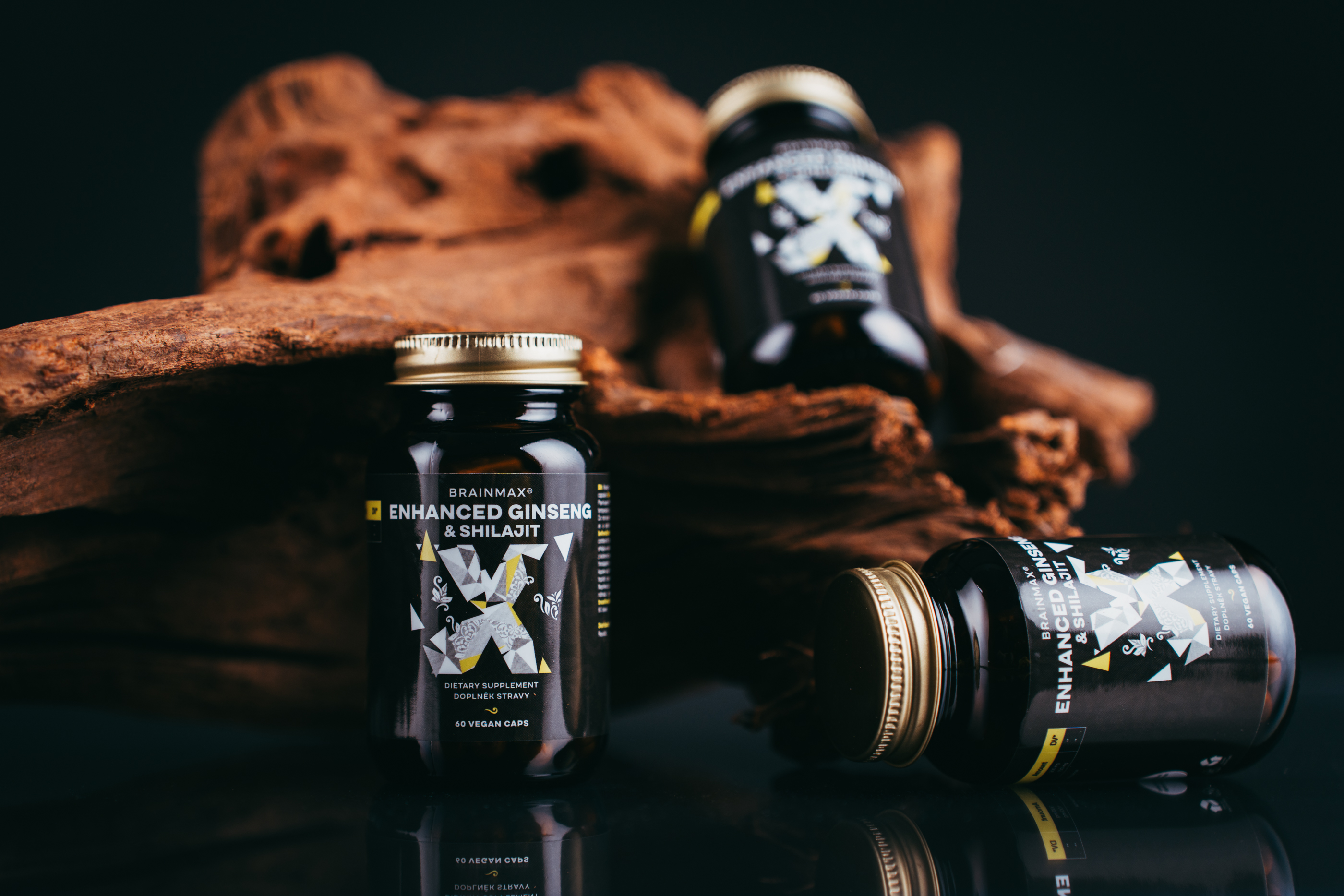 V tomto komplexu jsme spojili dva extrakty s přesně definovaným profilem účinných látek. Standardizovaný extrakt z korejského ženšenu obsahuje 20 % ginsenosidů – hlavních bioaktivních sloučenin spojených, díky kterým je ženšen spojován s podporou kognitivních funkcí1, vitality1 a imunitního systému1. Druhou složkou je shilajit, minerálně-organická substance z himálajských oblastí, standardizovaná na 20 % fulvových kyselin. Ty mají extrémně nízkou molekulární hmotnost a fungují jako chelační látky, které zvyšují vstřebávání minerálů jako železo, zinek nebo hořčík. Shilajit je spojován s podporou normálního stavu kostí a kloubů2, normální funkcí reprodukčního systému2 a s dalšími pro zdraví příznivými účinky2. Ženšen korejský neboli Panax ginseng (Ženšen pravý) i shilajit jsou považovány za antioxidanty1,2.