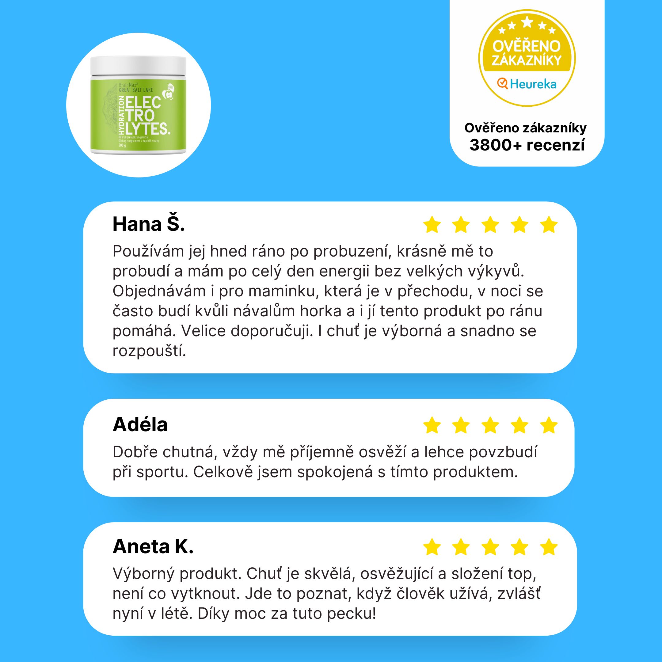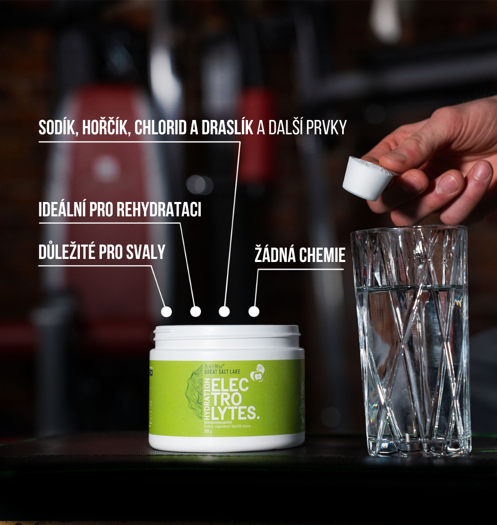 Elektrolyty jsou iontové formy minerálů, mezi které patří sodík, draslík a hořčík. Je běžné, že je ztrácíme během dne, obzvlášť při fyzické aktivitě nebo v horkém počasí kvůli pocení. BrainMax Hydration Electrolytes obsahuje tyto elektrolyty ve své přirozené formě, bez přidaného cukru, umělých sladidel ani umělých dochucovadel. Pouze elektrolyty ve formě prášku, které se dají snadno přimíchat do jakéhokoli nápoje.