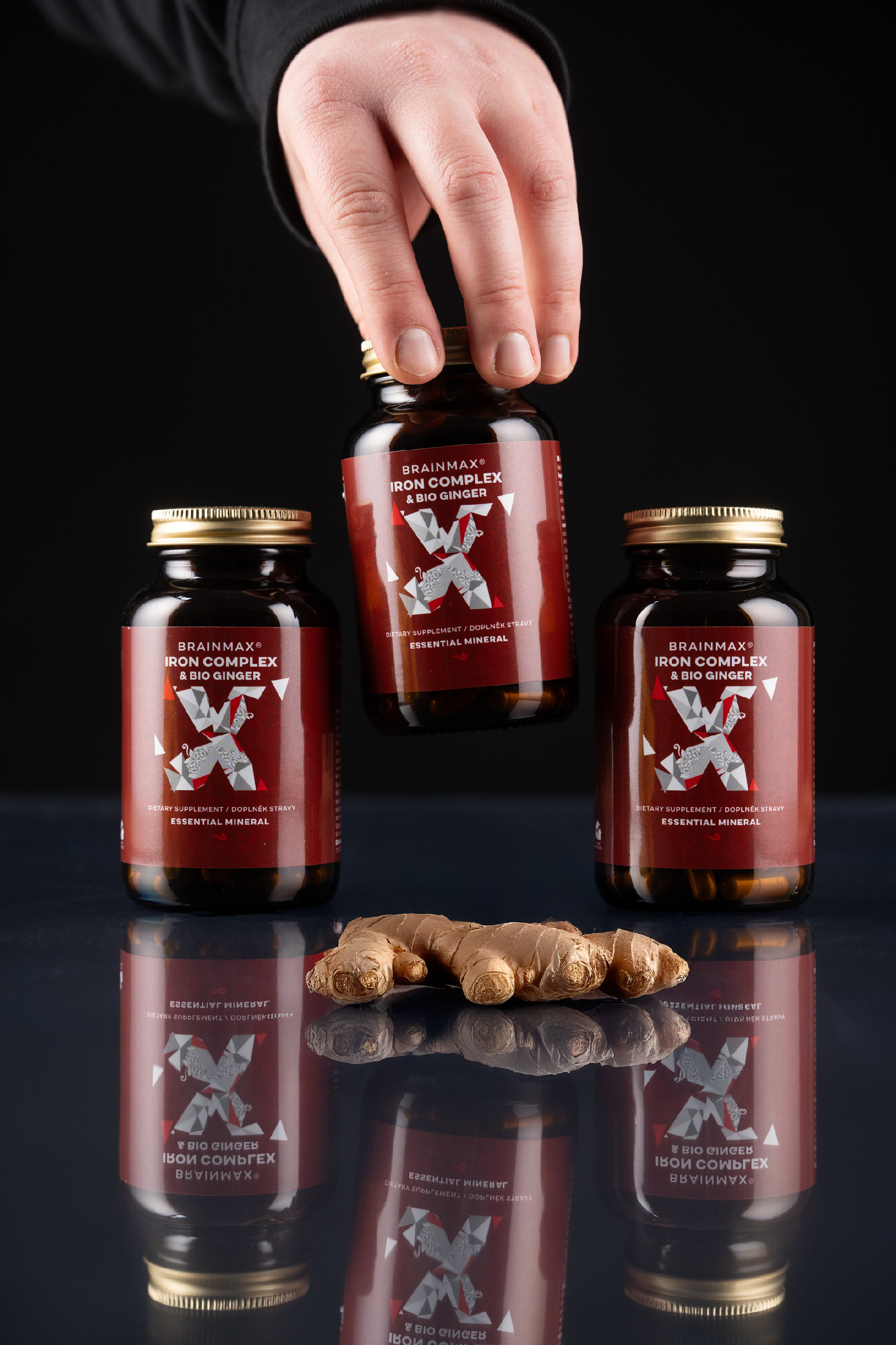 Složení: Bio zázvor, liposomální vitamín C (kyselina askorbová, liposomální směs ze slunečnicového lecitinu), Quatrefolic® glukosaminová sůl kyseliny (6S)-5-methyltetrahydrolistové obsahující 5-methyltetrahydrofolát (aktivní forma kyseliny listové), vitamín B12 (metylkobalamin), bisglycinát železnatý. Rostlinná kapsle na bázi HPMC. Neobsahuje žádné balastní látky (éčka) ani lepek.