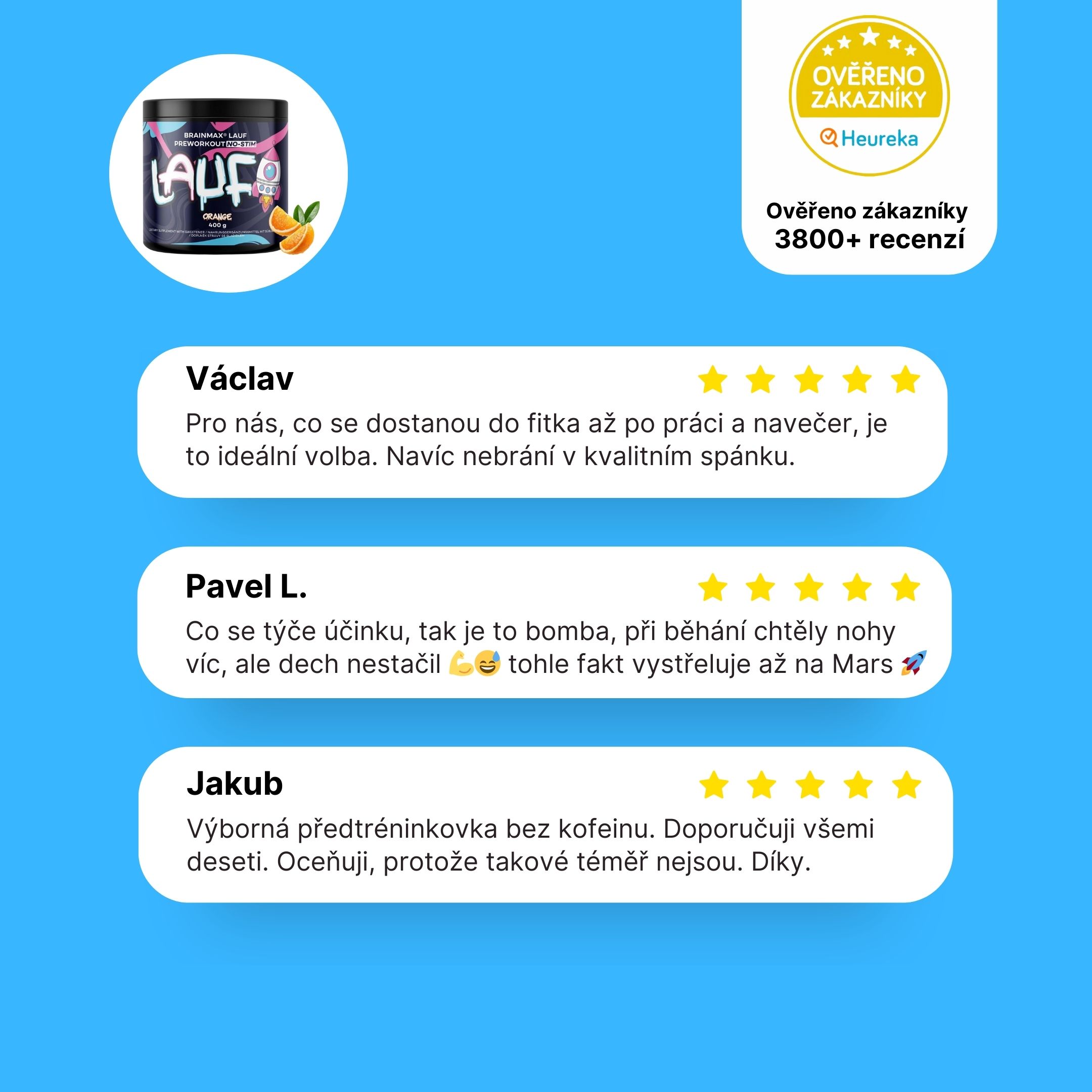 LAUF není určen jen do posiloven, ale můžete ho využívat i pro další sporty a to především vytrvalostní. Víme, že beta alanin s kreatinem jsou účinnější až při dlouhodobějším užívání, ale to neznamená, že bychom je nezařadili do složení. Jejich účinky jsou při pravidelném užívání vědecky ověřené. Jedno balení LAUFu vám bude stačit k nasycení kreatinem a karnosinem z beta alaninu.
