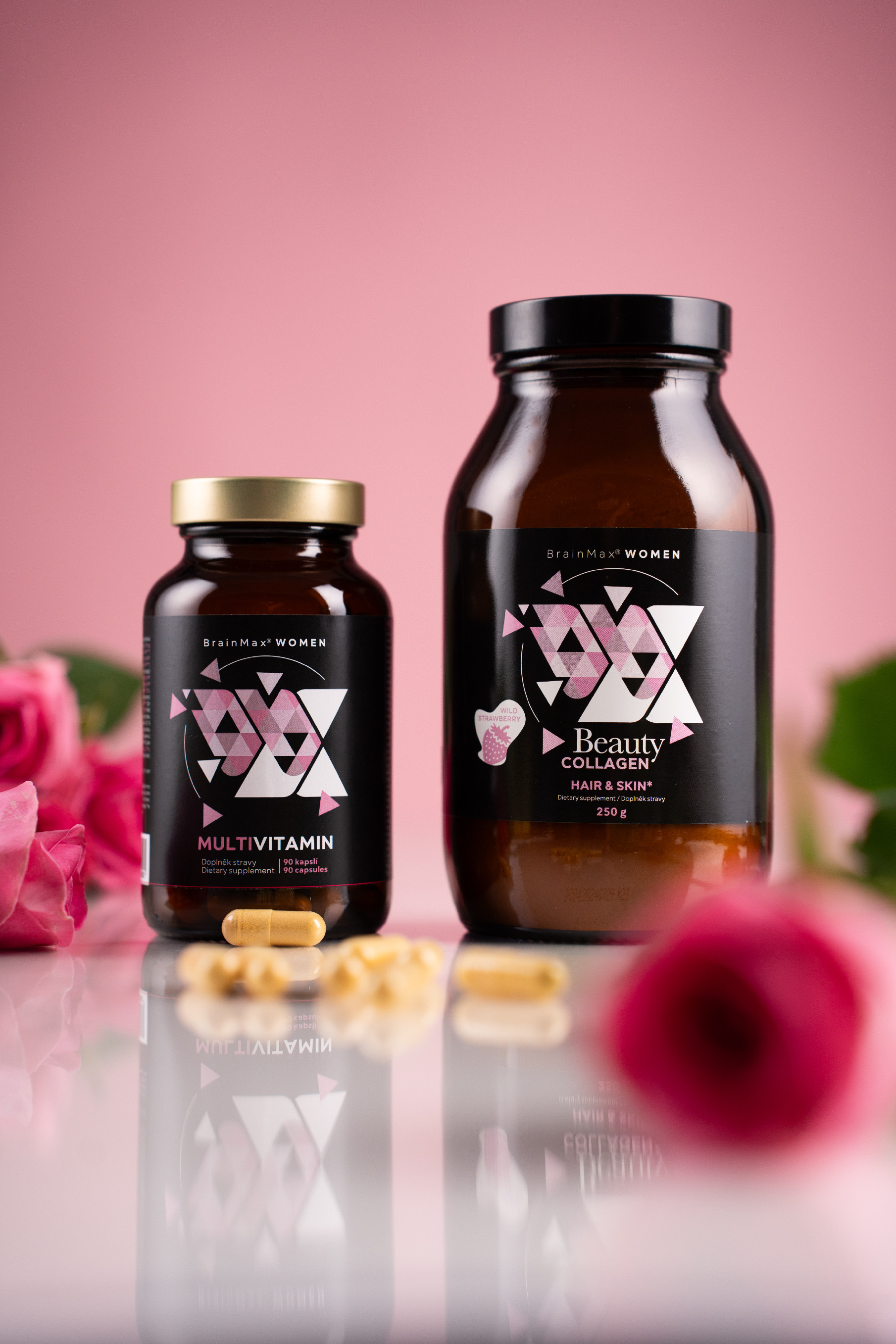 Proč zrovna tato kombinace? Protože v BrainMarket věříme, že krása začíná uvnitř. Komplex 33 prémiových minerálů a vitamínů jsme spojili s kolagenem, který rozhodně umí rozzářit. Správná výživa = silná žena zářící uvnitř i venku. A co tomu nasadí korunu? Pečlivě vybrané látky jsou v balíčku přístupné ve snadno vstřebatelných formách.