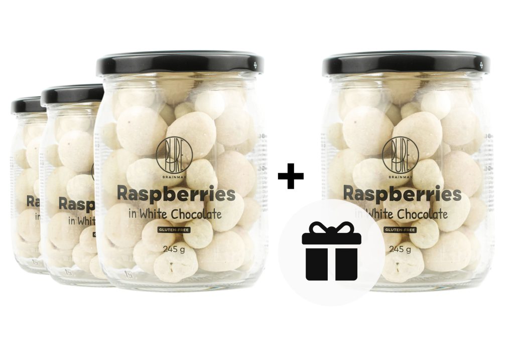 3+1 ZDARMA: BrainMax Pure® Lyofilizované maliny v bílé čokoládě, 245 g