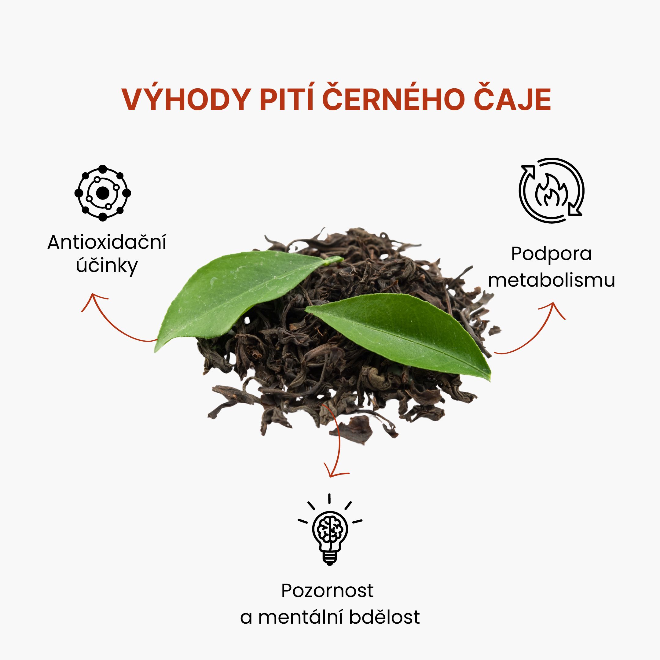 - Mentální bdělost: Kofein v černém čaji pomáhá zvýšit pozornost a mentální bdělost, aniž by způsoboval nervozitu jako některé jiné stimulanty.