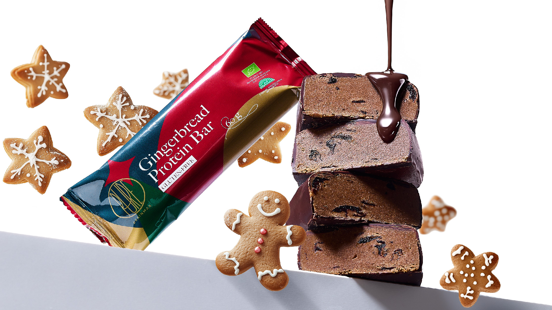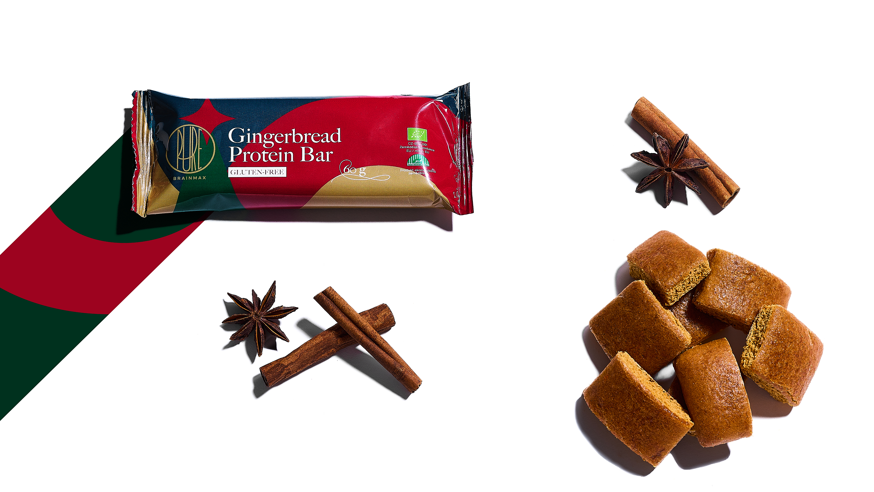 Limitovaná edice proteinové tyčinky s perníkem. Vůně Vánoc v  lahodné proteinové tyčince, které dominuje aromatické perníkové koření. Proteinová tyčinka z BIO syrovátkového a mléčného proteinu obsahuje 10 g bílkovin a všechny suroviny jsou organického původu.