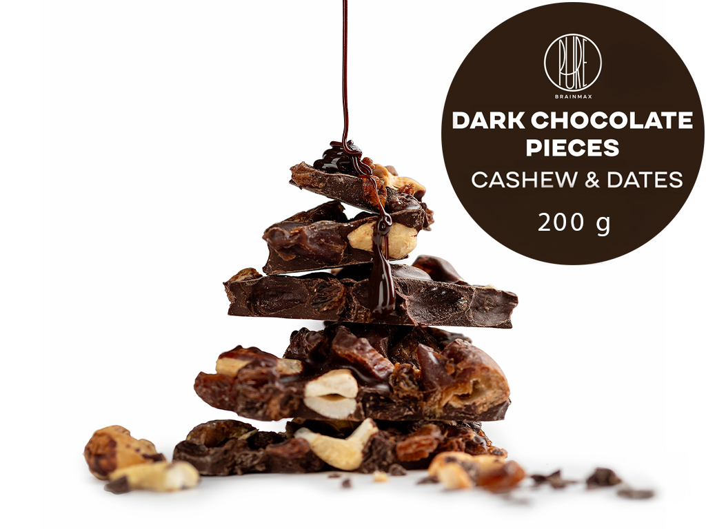 BrainMax Pure BrainMax Pure® Lámaná čokoláda hořká, kešu a datle, BIO, 200 g