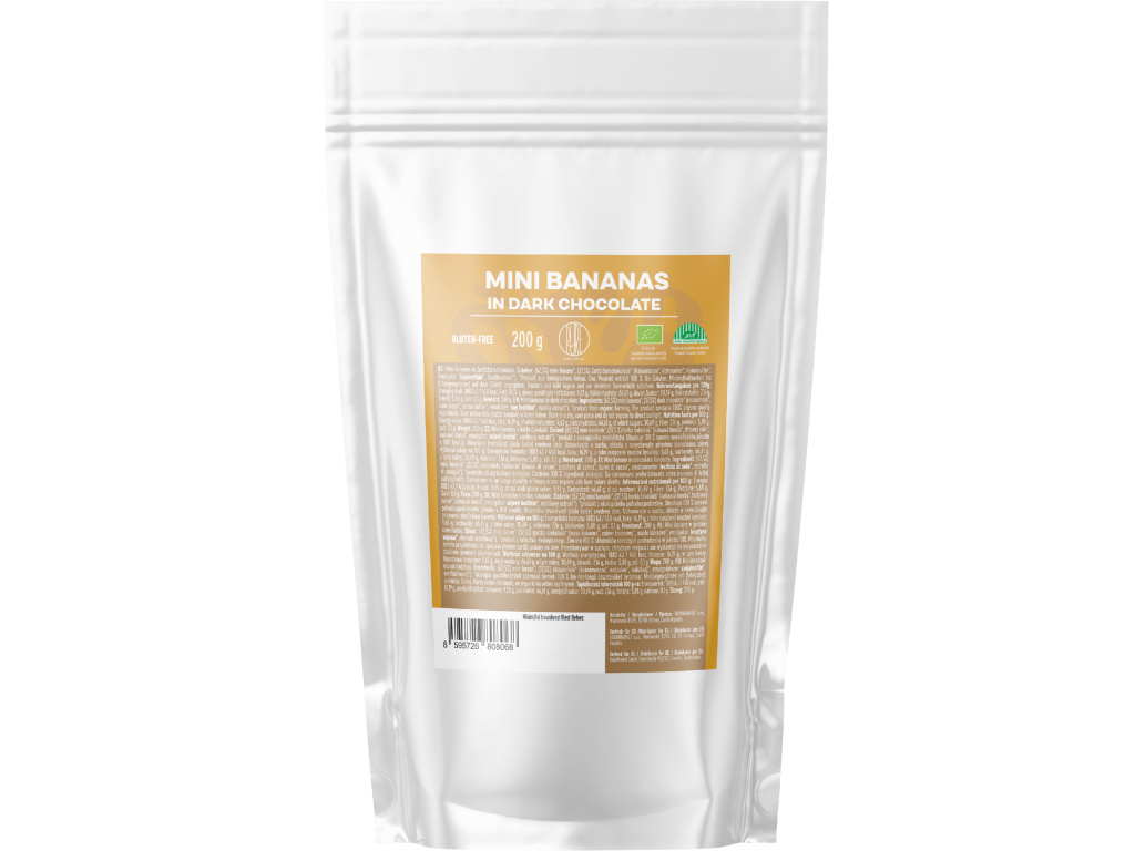 Žádná hmota s banánovým aroma – jen plátky sušených mini banánků obalené v 70% BIO hořké čokoládě. Mini banány jsou přirozeně sladší a díky šetrnému sušení při nízkých teplotách si zachovávají svou typickou chuť i strukturu. Každý kousek je ručně obalen do čokolády z kvalitní kakaové hmoty, třtinového cukru a kakaového másla, která dodává jemnou hořkost a příjemný nádech vanilky. Kombinace, která potěší všechny milovníky ovocno-čokoládových chutí.