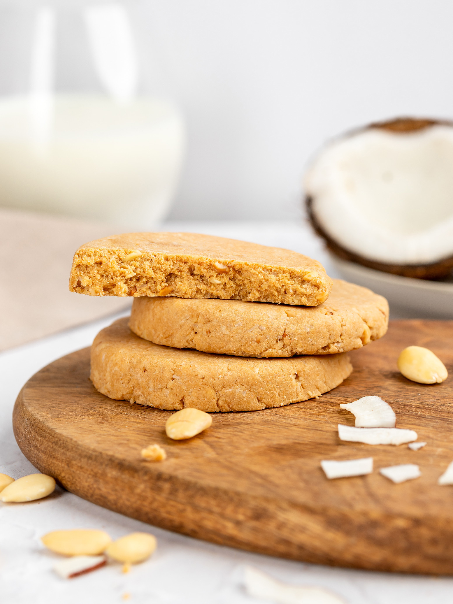 Každá proteinová sušenka obsahuje 22 g bílkovin z BIO mléčného a BIO syrovátkového proteinu a téměř 18 g vlákniny. Cookieska je krásně vláčná skoro až krémová, takže se nemusíte bát, že by vám drhla v krku.