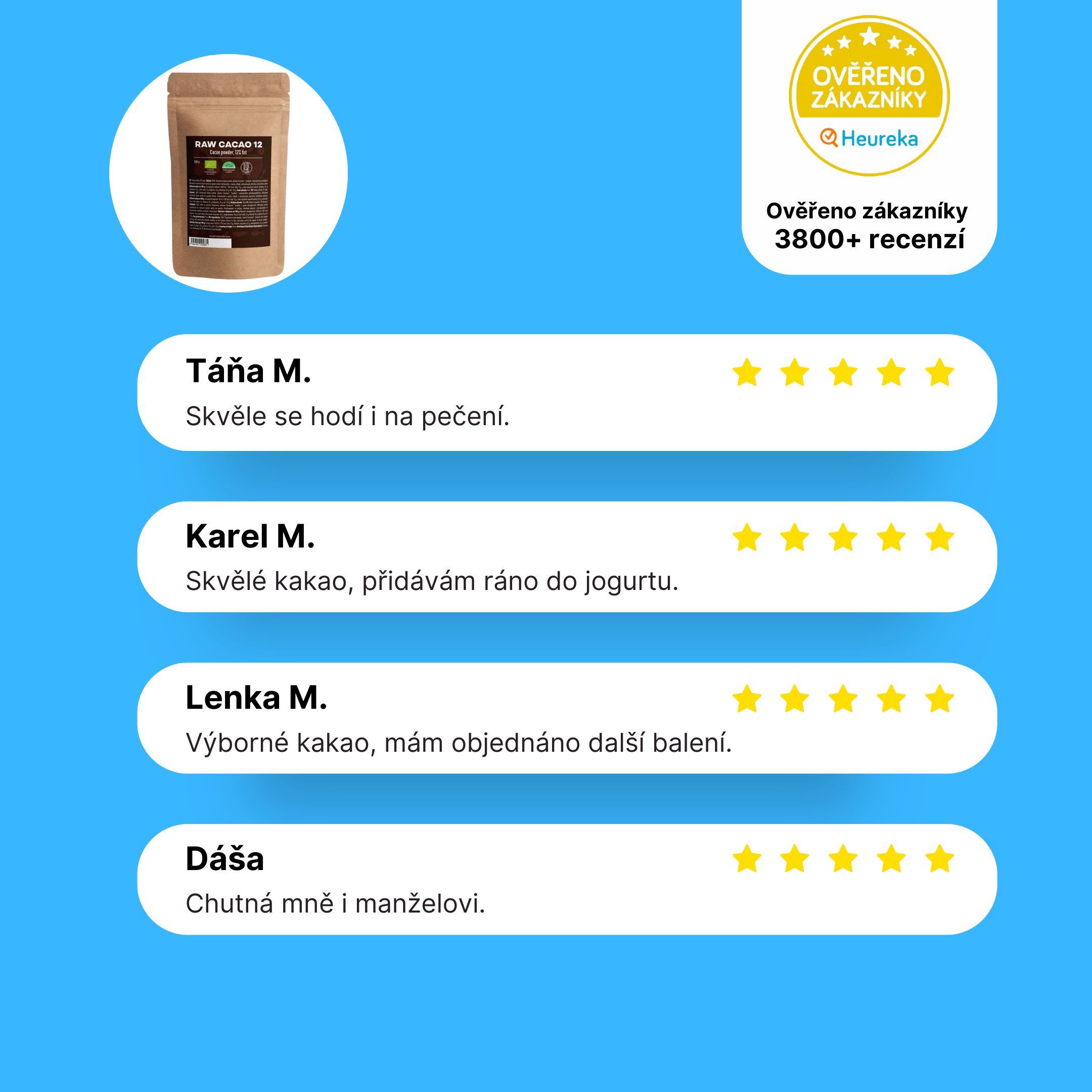 Naše RAW BIO kakao je bohaté na chuťové nuance – v každém doušku se prolínají tóny hořké čokolády, jemné květinové vůně i nádech tropického ovoce s karamelovým dozvukem. Výborně chutná, neobsahuje žádné přidané látky a zachovává si všechny vlastnosti díky šetrnému zpracování v RAW kvalitě.