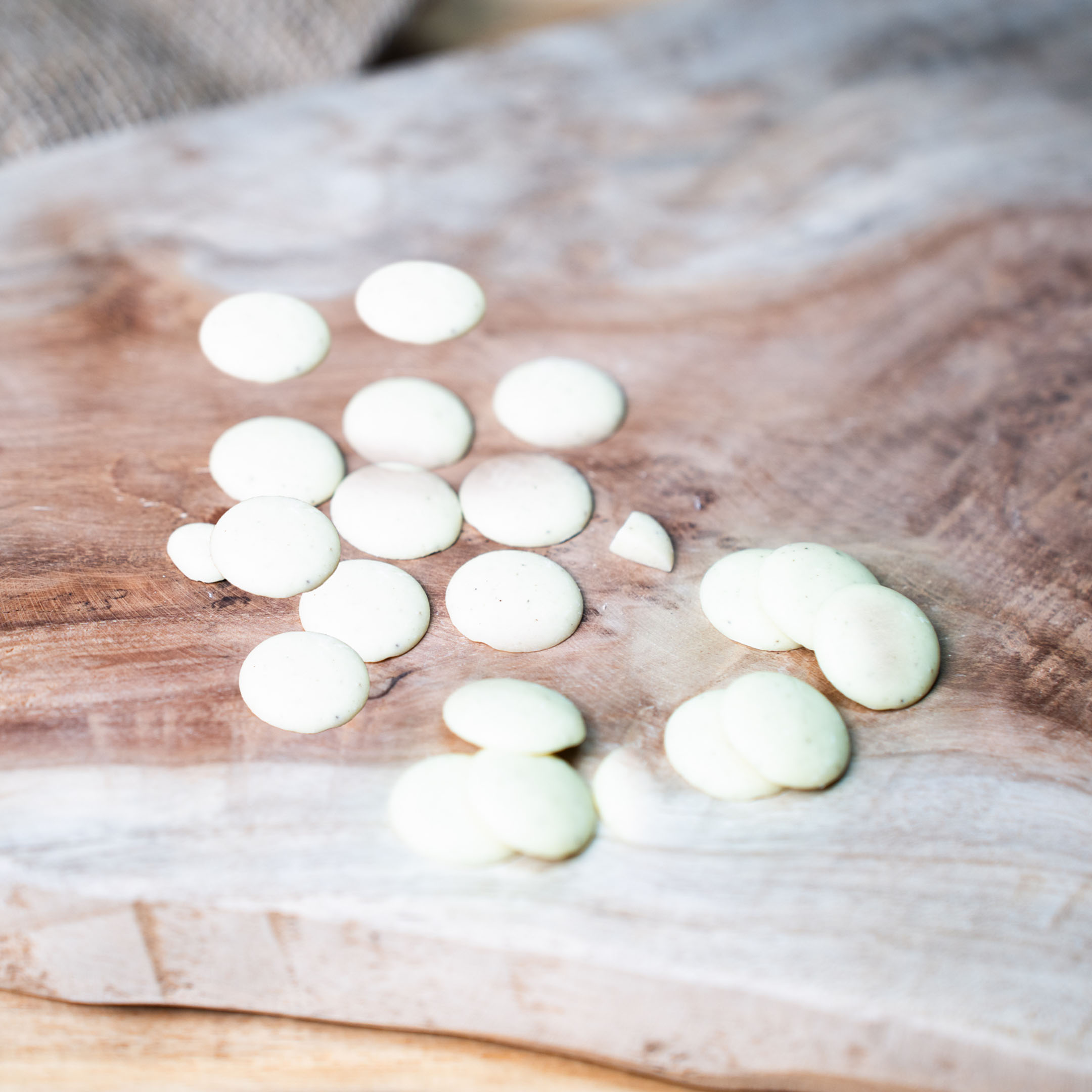 BIO pecičky z bílé čokolády, ve kterých se pojí výrazná sladká chuť bílé čokolády spolu s intenzivní chutí pravé vanilky, jsou skutečným potěšení. pro chuťové pohárky. Čokoládové pecičky mohou sloužit jako samostatná pochoutka, nebo jako bohatý doplněk pečených dezertů. Každá surovina pochází z BIO zemědělství, což zaručuje, že čokoláda nejen skvěle chutná, ale je také vyrobena s ohledem na udržitelnost a ekologii.