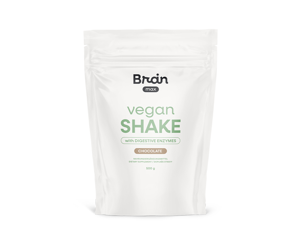 BrainMax Vegan Shake with Digestive Enzymes, Chocolate, 500 g