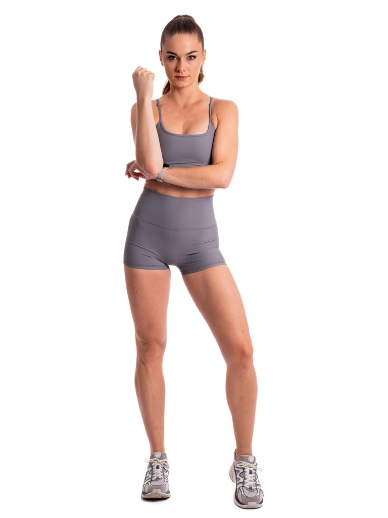 BrainMax žebrované kraťasy s vysokým pasem, šedá Velikost: S