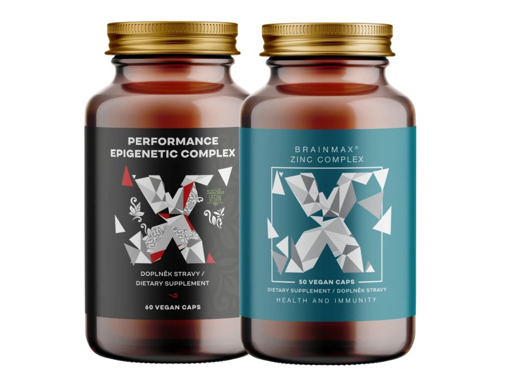 Performance Epigenetic Complex spojuje 99% trans-resveratrol (300 mg), pterostilben s vyšší biodostupností a 95% kurkumin (285 mg) s piperinem pro maximální vstřebávání všech složek. Zinc Complex kombinuje 15 mg zinku bisglycinát, selen v aktivní formě L-seleno-methionin a měď citrát s další dávkou BIO kurkumy (420 mg). Oba produkty spojují antioxidační vlastnosti kurkumy – v Epigenetic Complexu působí jako silný extrakt, v Zinc Complexu je obsažena jako funkční složka místo balastních plnidel.