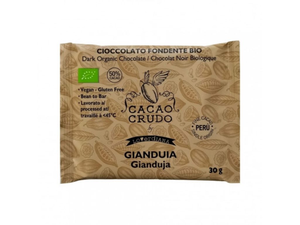 Cacao Crudo Raw Hořká čokoláda Gianduja, BIO, 30 g