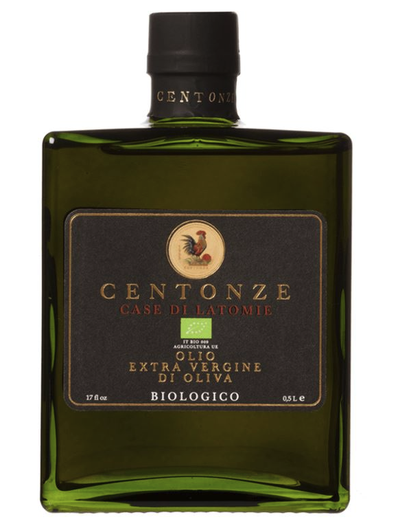 Extra panenský BIO olivový olej. Jedlý olej rostlinný jednodruhový, lisovaný za studena. Výběrová jakost olivového oleje získaného přímo z oliv a pouze mechanickými postupy. Základ oleje tvoří výhradně špičkový monokultivar Nocellara del Belice. Pro olej je charakteristická intenzivní zelená barva se zlatými odlesky, bohatá aromatická kompozice, středně intenzivní ovocná, plně zakulacená chuť, lehce kořeněná, s příjemným „koncem“ , nádechem po rajčatech a bylinkách. Díky skutečně nízkým teplotám zpracování, obsahuje olej Centonze vysoké množství bioaktivních složek a enzymů. Olej je vhodný při přípravě ryb, mořských plodů, zeleninových polévek a červeného masa.
