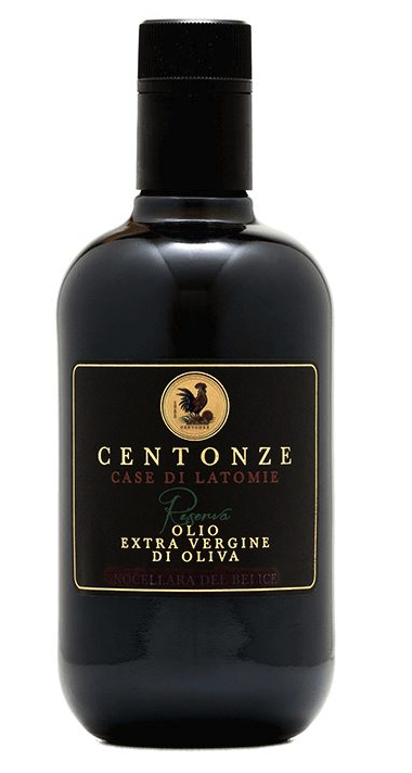 Extra panenský BIO olivový olej. Jedlý olej rostlinný jednodruhový, lisovaný za studena. Výběrová jakost olivového oleje získaného přímo z oliv a pouze mechanickými postupy. Základ oleje tvoří výhradně špičkový monokultivar Nocellara del Belice. Pro olej je charakteristická intenzivní zelená barva se zlatými odlesky, bohatá aromatická kompozice, středně intenzivní ovocná, plně zakulacená chuť, lehce kořeněná, s příjemným „koncem“ , nádechem po rajčatech a bylinkách. Díky skutečně nízkým teplotám zpracování, obsahuje olej Centonze vysoké množství bioaktivních složek a enzymů. Olej je vhodný při přípravě ryb, mořských plodů, zeleninových polévek a červeného masa.
