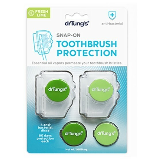 Revoluční Snap-On chránič zubního kartáčku s antibakteriálními disky. Udržuje váš zubní kartáček hygienický a svěží po dobu až 2 měsíců na jeden kotouč – aktivní výpary silných esenciálních olejů pronikají štětinami zubního kartáčku.