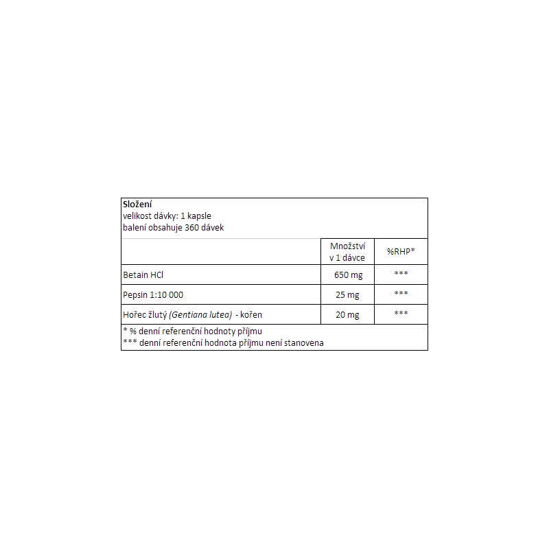 | Velikost dávky: 1 kapsle Balení obsahuje 360 dávek. |