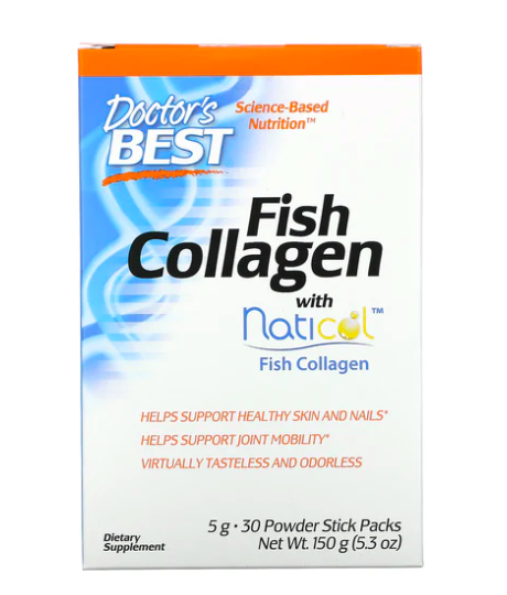 Doctor’s Best Fish Collagen obsahuje hydrolyzovaný kolagen typu I z mořských ryb. Kolagen je přirozenou součástí pojivových tkání v lidském těle. Prakticky bez chuti a zápachu, snadno se rozmíchá v oblíbeném nápoji.