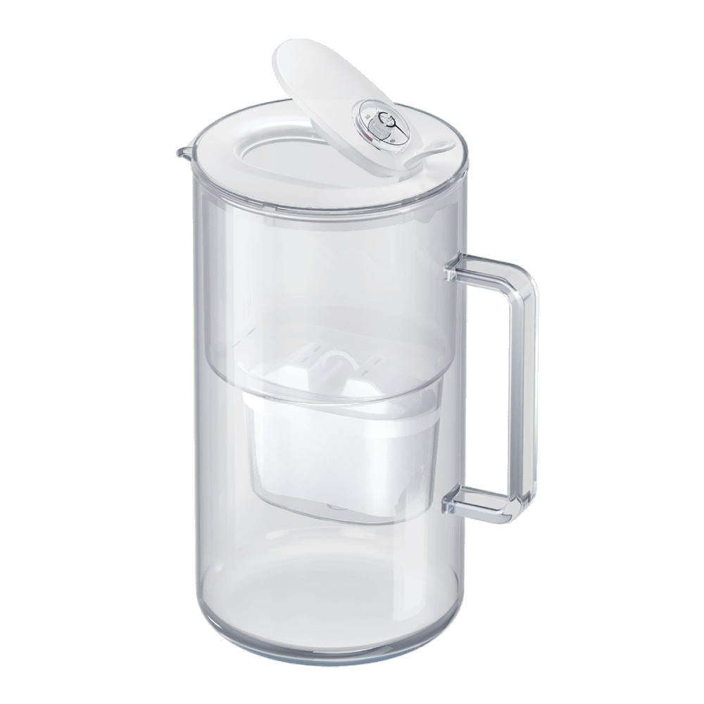 Pohodlné odklápěcí víko vám umožní snadno naplnit konvicí vodou bez sejmutí víka. Na víku konvicí je mechanický indikátor opotřebení filtrační patrony, který informuje o včasné výměně použité patrony za novou. K provozu počítadla nejsou potřeba žádné baterie.