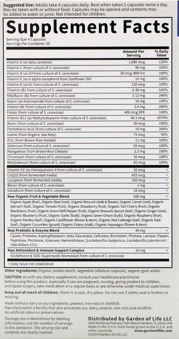 Garden of Life, Vitamin Code Men (multivitamín pro muže) – 120 rostlinných kapslí