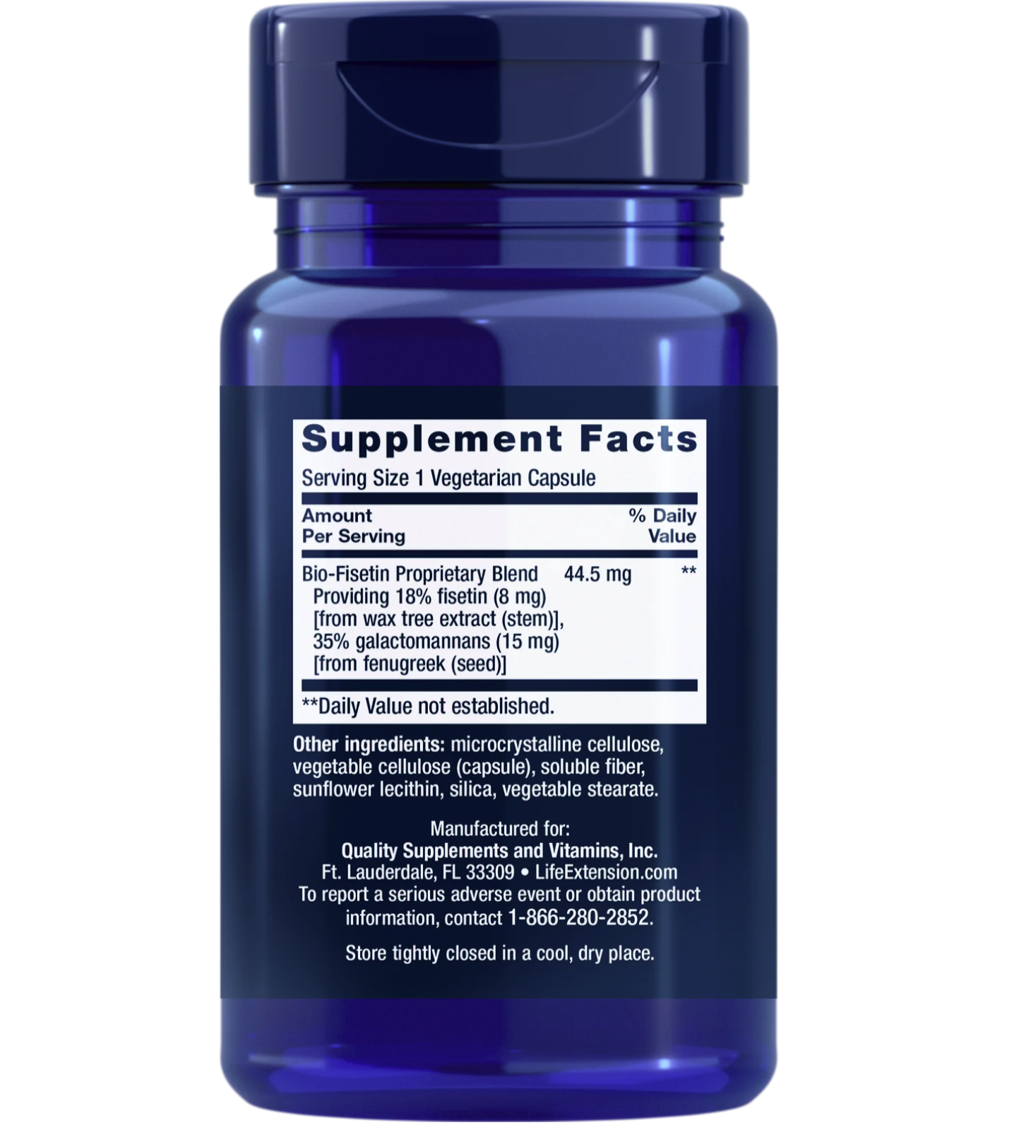 Fisetin je polyfenol ze skupiny flavonoidů. Bio-Fisetin je formulace, která kombinuje fisetin se sloučeninami galaktomannanu ze semen pískavice řeckého sena. Tato kombinace chrání fisetin během trávení. Tento doplněk stravy je navržen tak, aby byl až 25krát biologicky dostupnější než standardní fisetinové doplňky.