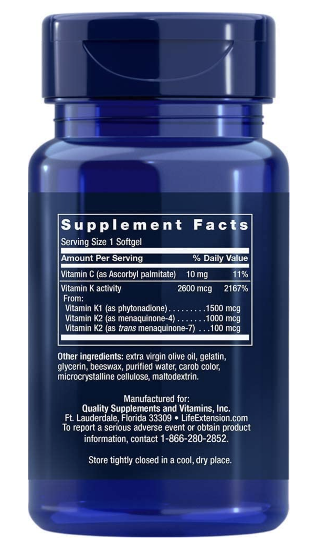 | Vitamin K2 (menaquinone-4) | 1000 mcg |