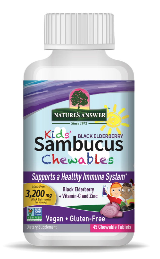 Nature’s Answer Kid’s Sambucus Chewables, žvýkací tablety pro děti, extrakt z černého bezu, 45 ks