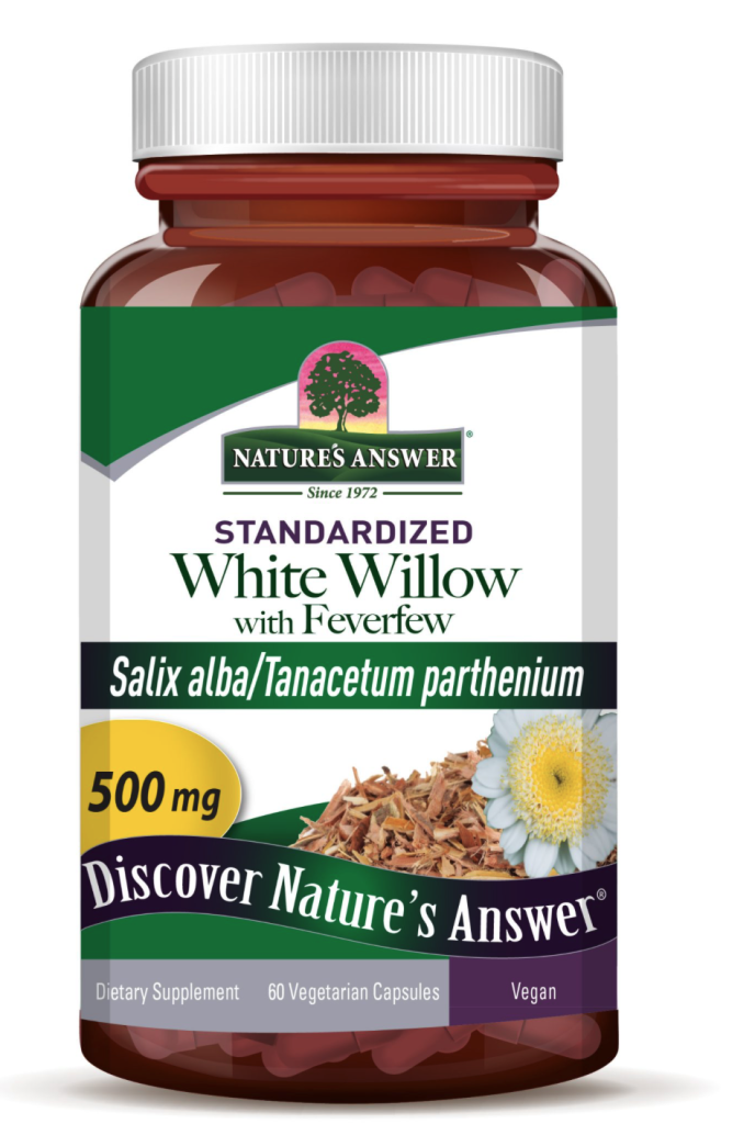 Nature’s Answer White Willow with Feverfew kombinuje extrakt z kůry bílé vrby standardizovaný na 15 % salicinu a extrakt z řimbaby obecné. Tyto rostliny jsou ceněny především v tradičním bylinkářství. Produkt obsahuje koncentrované rostlinné extrakty v pohodlné kapslové formě bez syntetických aditiv.