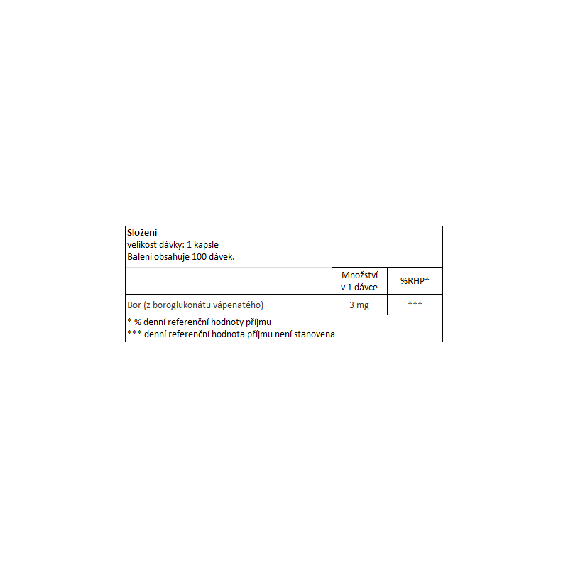 Bor (z boroglukonátu vápenatého)  3 mg ***