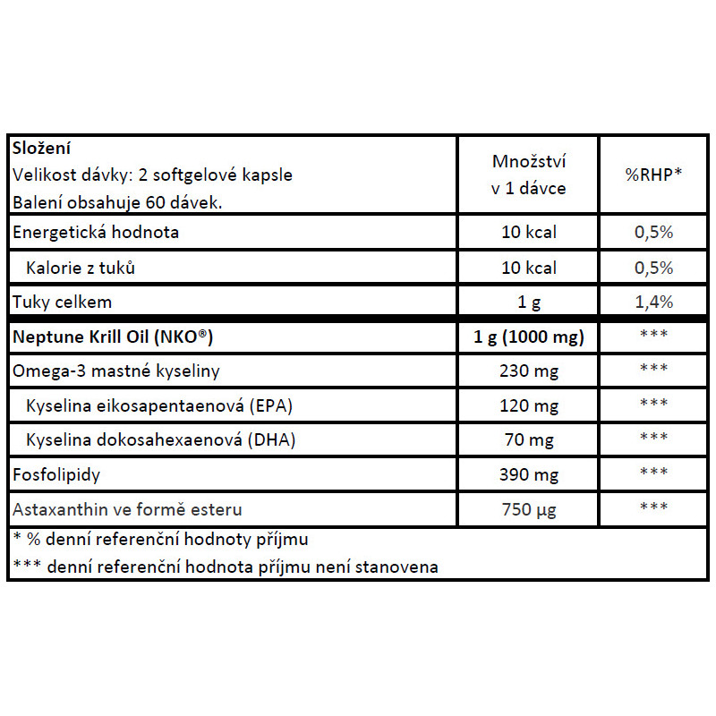 | Neptune Krill Oil (NKO) | 1 g (1000 mg) | *** |