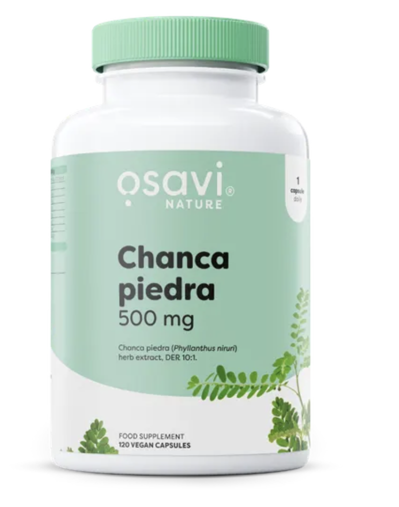 Osavi Chanca piedra 500 mg je doplněk stravy ve formě rostlinných kapslí. Obsahuje extrakt z tropické rostliny Phyllanthus niruri, známé také pod tradičním názvem chanca piedra, který v překladu znamená „drtič kamenů“. Phyllanthus niruri přispívá k normální funkci močové soustavy. Balení obsahuje 120 kapslí, což odpovídá 120 denním dávkám.