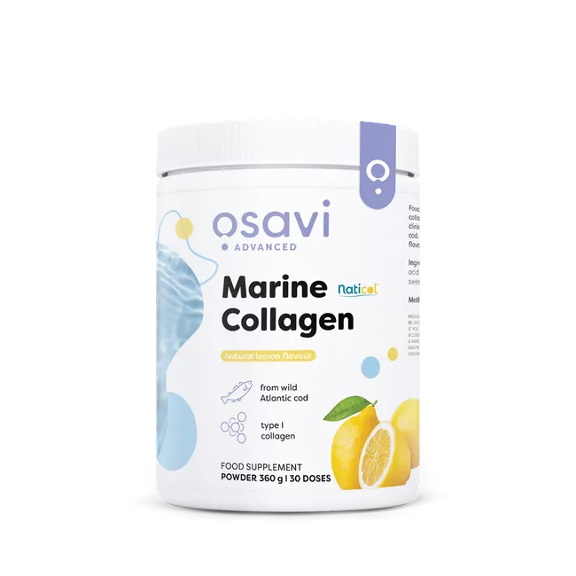 Osavi Marine Collagen Wild Cod Lemon je doplněk stravy ve formě prášku, který obsahuje kolagenní peptidy Naticol® a vitamin C. Kolagen patří mezi nejrozšířenější bílkoviny v lidském těle a je základní složkou pojivových tkání — přirozeně se nachází v kůži, kostech, chrupavkách, šlachách a vazech. Produkt je obohacen o vitamin C.