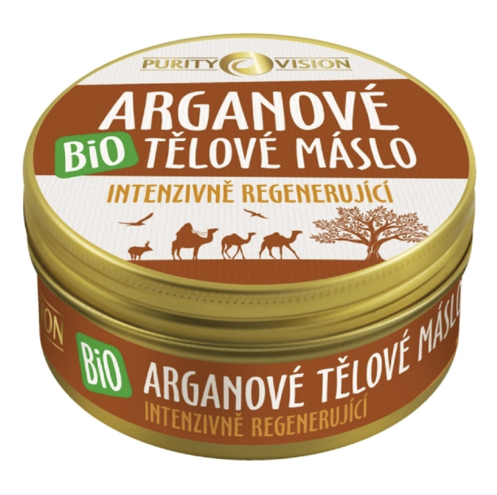 Hlavní složkou Bio Arganového tělového másla je Arganový olej PURITY VISION® z Maroka. Obsahuje vitamíny A, E a F, které mají příznivý účinek na zdraví a vzhled pokožky. Olej vyhlazuje drobné nedokonalosti kůže a intenzivně regeneruje suchou, citlivou a poškozenou pokožku.