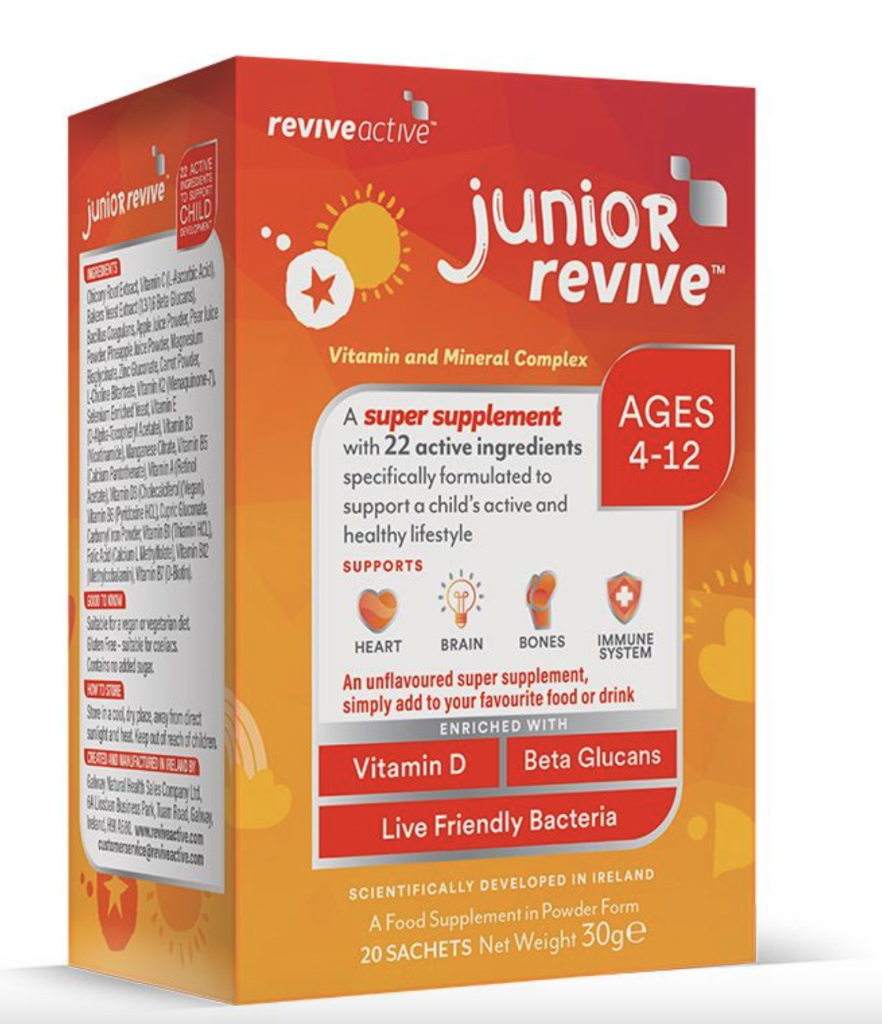 Dětské tělo každý den roste, vyvíjí se a čelí mnoha výzvám – od školních povinností až po sportovní aktivity. Junior Revive je špičkový doplněk stravy, který poskytuje vše potřebné v jedné denní dávce. Tento superdoplněk je speciálně navržen pro děti od 4 do 12 let, ale díky svému složení je vhodný pro všechny věkové skupiny. V každém praktickém sáčku se ukrývá pečlivě sestavený komplex vitamínů, minerálů, probiotik, vlákniny a beta-glukanů – bez lepku, umělých sladidel a s minimem aditiv.