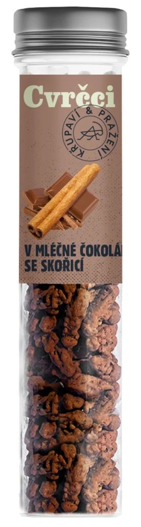Sens – Křupaví pražení cvrčci ve zkumavce, v mléčné čokoládě se skořicí, 30 g