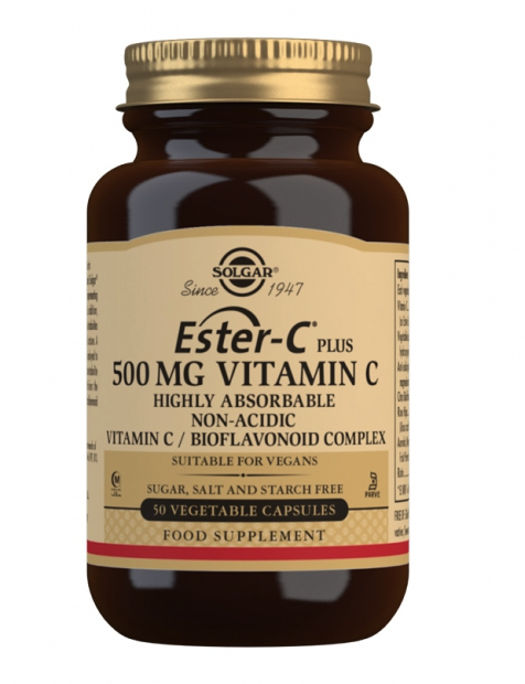 Ester-C® Plus je patentovaná receptura firmy Solgar®, která obsahuje pH neutrální vitamín C a metabolity vitamínu C, jež se vyskytují spolu s vitamínem C v přírodě. K vytvoření tohoto unikátního komplexu metabolitů L-askorbanu vápenatého se používá speciální výrobní proces. Produkt dále obsahuje acerolu, komplex citrusových bioflavonoidů, rutin a šípky.