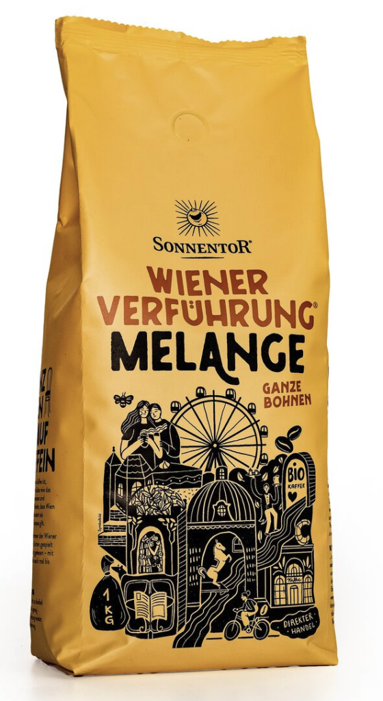 Sonnentor Vídeňské pokušení® Melange, 100 % Arabica, zrnková káva, BIO, 1000 g