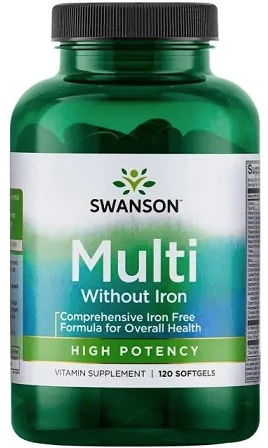 Swanson Multi without Iron (multivitamín bez železa), 120 kapslí