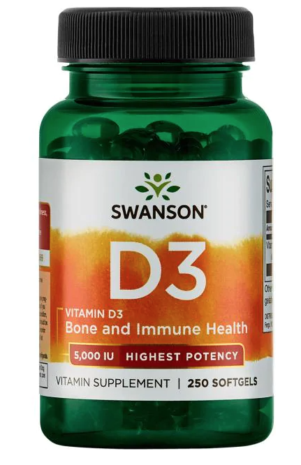 Swanson Vitamin D3, 5000 IU, Highest Potency (vyšší účinnost), 250 kapslí