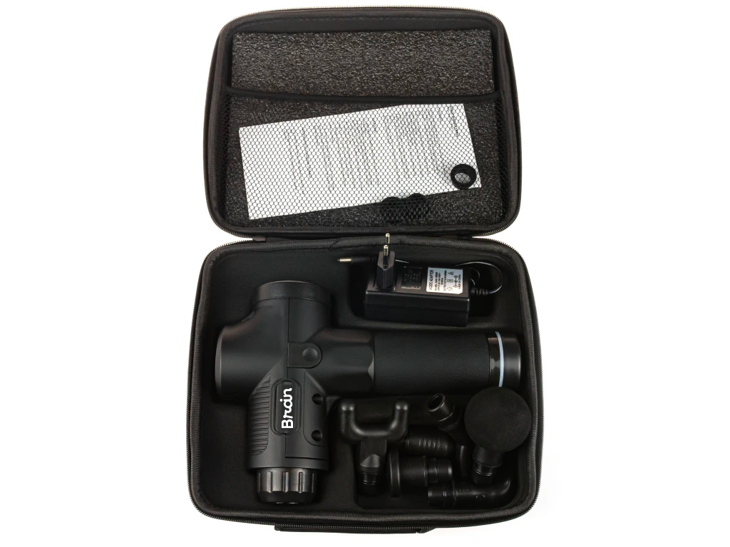 Masážní pistole pomáhá uvolnit ztuhlé svaly a lépe je prokrvit a tím urychlit regeneraci po tréninku. Masáž pomocí pistole je příjemná a vybrat si můžete z šesti náhradních hlavic a 30 různých druhů rychlostí. Záleží na tom, kterou část těla chcete promasírovat. Použít můžete 6 různých hlavic, které jsou vhodnější pro oblast šíje a ramen, zad či lýtek.