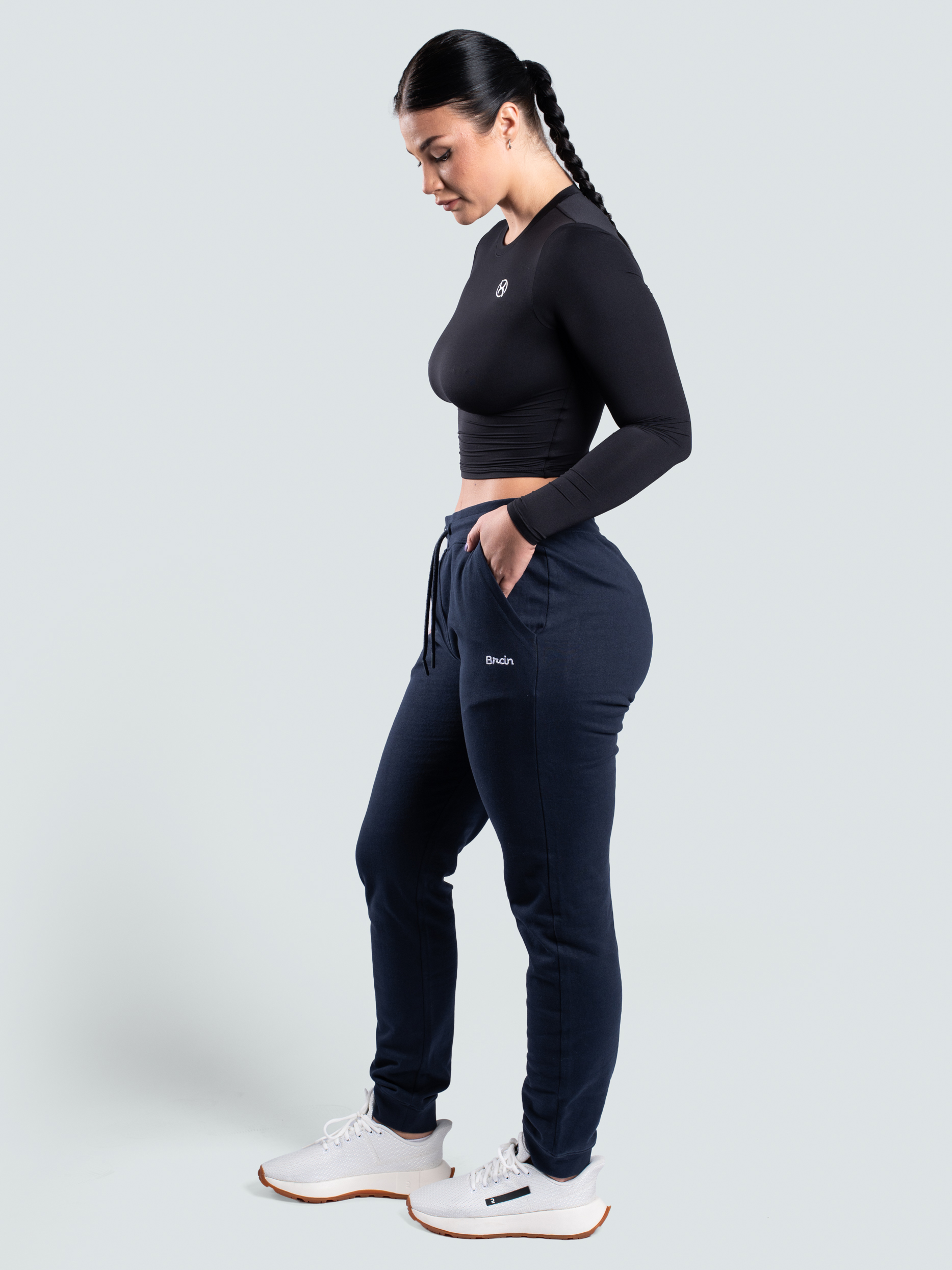 Slim joggery spojují pohodlí tepláků s moderním, zúženým střihem. Nohavice se směrem ke kotníkům postupně zužují a končí v elastických manžetách, díky kterým perfektně drží tvar. Tepláky sedí blíže k tělu, ale neomezují v pohybu. Jsou ideální pro ty, kdo chtějí čistý, sportovně-elegantní vzhled bez nadbytečného objemu. Hodí se jak na běžné nošení, tak i k lehkému tréninku.