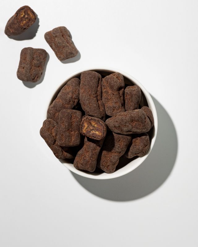 Dokonale měkoučké kousky banánů jsme ponořili do luxusní 65% hořké čokolády z vybraných kakaových bobů. Tak vznikla výrazně čokoládová pochoutka s příjemnou sladkostí banánu, jejíž chutě spolu tvoří dokonale harmonický celek.
