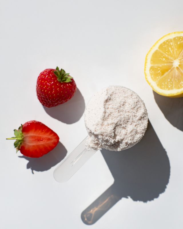 Balení: 500 gDávkování: 30 g (1 odměrka)Dávek v balení: 16 100 g30 gEnergetická hodnota1548 kJ / 365 kcal465 kJ / 109 kcalTuky0,6 g0,2 g- z toho nasycené mastné kyseliny0,4 g0,1 gSacharidy4,2 g1,3 g- z toho cukry2,9 g0,9 gBílkoviny85 g26 gSůl0,49 g0,15 gProfil aminokyselin:100 g*Esenciální aminokyselinyIsoleucin5,5 gLeucin12,2 gLysin11,2 gMethionin2,3 gFenylalanin3,6 gThreonin4,5 gTryptofan2,7 gValin5,2 gSemiesenciální aminokyselinyHistidin2,2 gArginin2,4 gNeesenciální aminokyselinyAlanin4,9 gKyselina asparagová11,3 gGlutamin16,8 gGlycin1,6 gProlin4,4 gSerin2,8 gTyrosin3,7 gCystein3 g*Jedná se o obsah aminokyselin na 100 g bílkovin.IngredienceSyrovátkový proteinový izolát instantizovaný (mléko, emulgátor: slunečnicový lecitin) 97 %, přírodní aromata, BIO řepový prášek, koncentrovaná citronová šťáva (prášek) 0,35 %, sladidlo: steviol‑glykosidy ze stévie.Upozornění pro alergiky: Alergeny jsou vyznačeny tučně ve složení produktu. Může obsahovat arašídy a skořápkové plody.